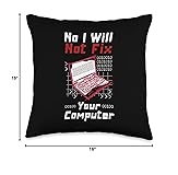 Tech Nerd Geek Gadgets Computer Security Clothing No I Will Not Fix Your Computer Programmer Or Coder Geeky Throw Pillow, 16x16, Multicolor
