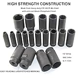 MacWork 19 Piece 1/2-Inch Drive Impact Socket Set, Deep, SAE, 3/8" to 1-1/2", CR-V&Cr-Mo Alloy Steel, 6-point Hex Radius Corner Design