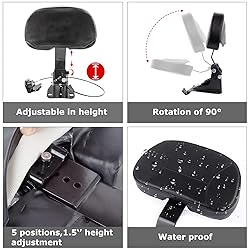 ENHANCED RIDING COMFORT - Motorcycle front Rider backrest is designed to provide ultimate comfort for long rides. The ergonomic design and front-to-back movement allow you to find the perfect position to support your back and reduce fatigue, ensuring a more enjoyable riding experience. SUPERIOR DURABILITY - Touring plug-in driver rider backrest are constructed from premium microfiber leather, foam, iron, PP plastic to withstand the rigors of daily use. It is sturdy and durable, ensuring that it can be used for many years without losing shape or effectiveness. Invest in our rider backrests for long-lasting support and peace of mind. EASY INSTALLATION AND COMFORT - The adjustable and foldable rider driver backrest pad is designed for easy installation. All necessary hardware included so you can install it on your motorcycle seat quickly and easily. In addition, the angle of the backrest can be slightly adjusted forward or backward, and the height of the backrest can also be adjusted. To accommodate riders of different heights, everyone can find their best riding position. VERSATILE COMPATIBILITY - Touring adjustable driver backrest pad is compatible with Touring CVO Road Glide Road King Electra Glide Street Glide FLHR FLTRX FLHX FLHT 2009-2023.This Backrest Only Used to the matching one-piece seat and not for Two-up seats.Does not fit Trike models and tall boy seat.Our sissy bar can be easily installed and adjusted to suit your specific needs. STYLISH DESIGN - Combining functionality with style, our street glide driver backrest sissy bar features a sleek and modern design that enhances the overall aesthetics of your motorcycle. The black finish and streamlined shape seamlessly integrate with your bike's appearance, adding a touch of sophistication while providing exceptional comfort and support. Elevate your riding experience with our stylish driver backrest.
