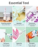 6PCS TOOLS: Includes a scoring stylus that you won't find in any other rival's kit on the market! Ergonomically designed scissors that are easy and comfortable to use whether you are left- or right-handed; Weeder with cap for safe storage; Also comes with tweezers, spatula and scraper, all of which are necessary for your crafting time. SCORING STYLUS: Help you get a clean and straight crease to make crafting time easier when making cards, scrapbook, envelopes, boxes, and other 3D projects. ERGONOMIC DESIGNED SCISSORS: Can be used left- or right-handed thanks to the ergonomically designed handle and is sharp enough to make precise cuts; Soft TPR rubber Inner grip & comes with a blade cover. HOOK WEEDER WITH CAP & TWEEZERS: Each weeder is equipped with a protective cap that prevents unintended poking and for safe storage. Great for removing the finest details or the smallest letters. Tweezers are designed with a reverse grip feature, saving your time and effort when you lift your design. GREAT ADDITION TO YOUR CRAFTING LIFE: Whether you want to make HTV, adhesive vinyl, papercraft sewing, lettering and basic craftworks, these weeding kits ensure you'll always have the right tools for the DIY task at hand.