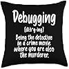 Comical Debugging t shirt Computer Software Developer Throw Pillow
