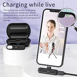 【Super Easy to Use】Plug and play, no software installation or Bluetooth connection required. Can be used for vlog video recording, live with goods, outdoor interviews, online teaching, video conferencing or a variety of scenes. Suitable for all ages. 【Super Long Endurance】The microphone has a 100mAh rechargeable battery that can last 4-5 hours on a full charge. Equipped with 450mAh rechargeable battery storage bin. The microphone can be put into the charging case for storage. The charging bin will automatically charge the microphone and it can be fully charged within one hour if the battery runs out. No longer worry about equipment easy to lose and battery life is not long enough. It can be used more conveniently and freely at any time. 【Free Switch between 3 Modes】Our microphones are equipped with original mode, noise reduction and KTV modes, which can be switched by short pressing the power button. Original mode is recommended for quiet scenes, allowing you to feel the purest sound. The noise reduction mode can help eliminate more environmental noise. The built-in noise reduction chip can carry out intelligent noise reduction for different scenes. KTV mode can provide reverb effect when you record songs with the software. 【Small in Size and Fully Functional】The device receiver is equipped with Type-C charging interface, so it does not affect the charging of the device. We also have lighting to 3.5mm earphone adapter, which can be used to connect the peripherals audio. There is also Type-C interface on the lapel microphone, which can connect the earphones equipped with us to realize real-time monitoring. Note: This device version is Lighting verson. Widely compatible with most social and video applications. 【Packing List and After-sales Service】Packing List: 1. Charging case 2. Wireless receiver 3. Lapel microphone 4. The charging line 5. Monitor headphones 6. Lighting to 3.5mm earphone receiver 7. The instruction. From the date of purchase, we provide 1 year free warranty service (except for man-made damage). If you have any questions, please feel free to contact us. It is recommended that you read the instructions carefully and follow the instructions.