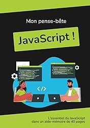 - Mon pense-bête Javascript est un ouvrage destiné aux débutants qui souhaitent devenir développeurs web ou simplement apprendre la programmation. On ne présente plus le JavaScript (à ne pas confondre avec Java) qui devient le langage incontournable pour le développeur front-end. Bien évidemment, vous devrez connaître le HTML et le CSS avant de vous lancer dans le code JS. Ce cahier tout en couleur au format A4 abordera les sujets suivants :Les variables et les opérateursL'intéraction avec l'utilisateurLes fonctionsLes instructions logiquesLes tableauxLa gestion des exceptionsLe BOMLe DOMLes événementsLa planification de l'exécution d'un scriptLa POO (programmation orientée objet)Les APILe stockage des données dans le navigateurJQueryEn un coup d'oeil, ce mémento JavaScript sera idéal pour retrouver une syntaxe.