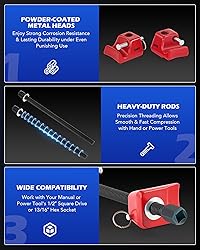 Works on Most Vehicles: This heavy-duty spring compressor tool set by Orion Motor Tech repairs bent and damaged parts and performs the necessary suspension maintenance on the MacPherson struts and springs found in most small and medium-sized cars Secure Compression: Acme-threaded rods ensure a firm grip on springs, while built-in detent pins securely lock them in place, providing reliable, non-slip compression for safe and precise work Wide Compatibility: Working with your manual or power tool's 1/2-inch square drive or 13/16-inch hex sockets, our Acme rods and end pieces offer a 10.5" range, wider than the competition to work with more vehicles Built to Last: Our pair of heavy-duty strut spring compressors boasts high durability and corrosion resistance under even punishing use thanks to their heat-treated steel construction, black oxide finish along the threaded rods, and powder-coated heads Compact & Portable: This hock spring compressor tool set comes with a blow-molded case, keeping parts organized and easy to carry, store, and access, so you're always prepared for your next repair job