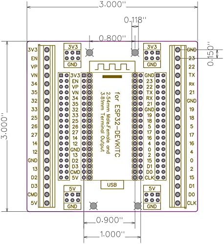 - The dual-row input bus allows you to plug in 0.9 "or 1.0" ESP32 modules for maximum compatibility.
