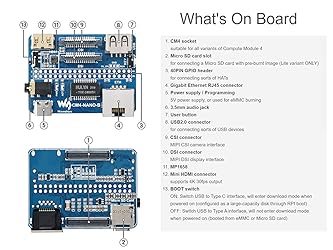 [Nano Base Board (B) For Raspberry Pi Compute Module 4] Suitable For Evaluating The Raspberry Pi CM4 Or Being Integrated Into End Products [Same Size As The CM4]Standard CM4 Socket,Suitable For Narrow Application Environment [Multiple Peripheral Interfaces]Standard CM4 Socket, 40PIN GPIO, Gigabit Ethernet, USB2.0, DSI, CSI, 3.5mm Audio Jack… [STORAGE]Micro SD card socket for Compute Module 4 Lite (without eMMC) variants [Note]The CM4 is NOT included. Please buy it separately if necessary.
