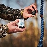 Weather-resistant, cotton synthetic blend rope withstands harsh conditions and soaks up Rack Rub gel to provide a lasting scent Stimulates rub activity on licking branches by mimicking a buck’s forehead and preorbital gland scent 2 fl. oz. amber glass bottle of Rack Rub gel with mess-free dauber Seasonal use: Early, mid, late