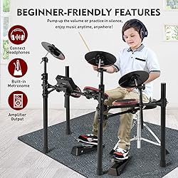 - MUSTAR Electronic Drum Set, Electric Drum Sets for Adults Beginners Kids with Mesh Drum Pads, Kick Pedal, Drum Stool, Drum Sticks, USB MIDI Connectivity, 180 Sounds & 15 Kits, Holiday Birthday Gifts