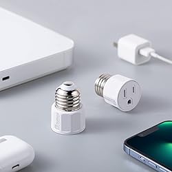 [Light Bulb Socket Adapter 3 Prong Design] The light socket outlet can be applied in both 3 plug and 2 plug, and suit for both E26/E27 light socket adapter; This light socket to plug adapter is more stable and convenient than 2 prong socket adapter, which has a wider range of applications [Portable and Easy to Install] Just turn off the light fixture, remove the existing bulb, screw the socket plug adapter into the socket, when outside plugs aren't available, you can easily transform a light socket into a 3 prong polarized outlet; The light socket plug has longer access head (1.18 inch) the total length is 2.17 inch, and the width is 1.18 inch, which not only ensures the safety of access, but also takes into account the characteristics of portability [Product Rating] E26/E27 light outlet plug adapter voltage range: 0-125VAC, wattage: 1250W; This light bulb adapter is not suitable for use in wet locations [Stable Material] The 3 prong light bulb socket adapters are made of flame retardant PC material, heat-resistant and long-lasting, this light bulb adapter with outlet attached with US standard [Widely Applied] The light bulb to outlet socket adapter is suitable for E26/E27 sockets; You can use this lamp outlet adapter to replace the light bulb on a desk lamp to charge a mobile phone, plug into the socket in the garage to power a lift or a surveillance camera; Plug in the front lampshade to power string light at the festival; The screw in outlet for light socket is ideal for electrical, domestic, industrial, mechanical and other appliance which bring convenience to your life