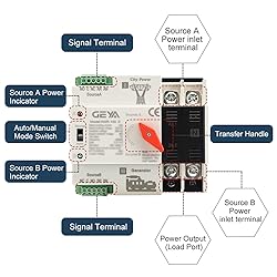 GEYA Mini ATS Automatic Transfer Switch Electrical Selector Switches Dual Power Switch 2Pole 100A 220V 50/60Hz Grid to AC Generator (Black)