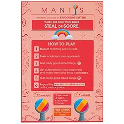 How to Play: Experience a rollercoaster of emotions in Mantis, where the only two rules are simple: Steal or Score. Collect matching sets of cards by swiping them from your opponents, only to have them steal back! This back-and-forth battle continues until someone comes out on top. It’s a game of strategy, luck, and plenty of laughs. What’s Included: Mantis includes 105 beautifully illustrated cards featuring new, original mantis shrimp artwork that will delight both kids and adults. The game also comes with an easy-to-follow instruction manual (that you might just skim) to get you playing in no time. Who's it For?: Designed for 2-6 players, ages 7 and up, Mantis is perfect for kids, teens, and adults. Whether you're looking for a quick game to play with the family or something to spice up your next gathering, Mantis delivers endless fun for players of all ages. Where to Play: Mantis is a versatile game that’s perfect for family game nights, casual hangouts, or even a quick break at work. With its simple rules and engaging gameplay, it’s also great for travel, camping, or any time you need a dose of quick and fun competition. Our Story: Brought to you by the creators of Exploding Kittens and illustrated by The Oatmeal, Mantis is a game that’s easy to learn but hard to master. Backed by a successful Kickstarter campaign, this game is another hit from the minds that brought you quirky, creative fun that’s now even part of the Netflix universe.