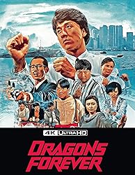 - SPECTACULAR ALL THE WAY AS JACKIE CHAN BUSTS A HIGH TECH DRUG RING!Hotshot lawyer Jackie Lung (Jackie Chan, Rush Hour, Police Story) is hired to defend the owner of a factory which, unbeknownst to him, is the centre of a clandestine narcotics syndicate. He enlists resourceful acquaintances Wong Fei-Hung (Sammo Hung, Enter The Dragon) and Dung Dak-Biu (Yuen Biao, Once Upon a Time in China) to assist in the case, but loyalties begin to falter when romance blossoms between both sides.BONUS FEATURESHong Kong Version - 4K restoration of the original Hong Kong version of Dragons ForeverAudio Commentary with Mike Leeder and Arne VenemaEnglish Version - 4K restoration of the English version of Dragons Forever, which was commissioned by Golden Harvest for international audiences outside Asia with the classic English dub. (94 min) Japanese Version - 4K restoration of the Japanese version of Dragons Forever., which features two extra scenes and an ending with outtakes. Presented with English subtitles. (98 min)Original Hong Kong trailer for Dragons Forever. In Cantonese, with English subtitles. (4 min)Original English trailer for Dragons Forever. In English. (3 min)Outtakes and Behind the Scenes - a collection of outtakes and behind the scenes footage, some quite painful but very funny, presented with music. (13 min)Japanese End Credits - original Japanese end credits for Dragons Forever. In Cantonese, not subtitled. (2 min)Deleted Scenes - two deleted scenes. In English. (4 min)The Legacy of Dragons Forever - in this short program, stuntmen Troy Sandford and Chris Jones, and filmmaker Boyask, amongst other, discuss the unique chemistry between the stars of Dragons Forever. In English. (3 min)The Breaker - this archival program takes a closer look at the acting and fighting careers of Billy Chow, who has a memorable role in Dragons Forever. In English and Cantonese, with English subtitles where necessary. (35 min Kick Fighter - in this archival program, Andy Cheng explains how he entered the film business and discusses his fighting style. There are also some very interesting comments about his collaborations with Jackie Chan. In English. (39 min)Beyond Gravity - in this archival program, martial arts/background performer Joe Eigo discusses the enormous impact Bruce Lee's films had on him and his eventual transition to the film business. In English. (13 min)