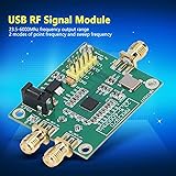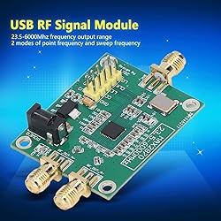 EXCELLENT SYNTHESIZER: The module adopts high performance frequency synthesizer that can work in integer and fractional N modes. SIMPLE CONTROL: Powered by USB 5V, support button to adjust frequency output or serial device (not included) control. FREQUENCY RANGE: The frequency range of the RF source module is 23.5‑6000Mhz, with 2 modes of point frequency and sweep frequency. MULTIPLE USAGES: Widely used in radio infrastructure, test and measurement, communications, clock generators and other fields. HIGH PERFORMANCE: This module can maintain good phase noise and spurious indicators, with stable and less interference.