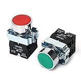 STARELO 2PCS 22mm Momentary Push Button Switch 1NO 1NC 10A 440V Metal Material XB2-11BN.(1Green & 1Red) Self-resetting Toggle Switch (Red)