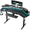 • [ 72" Ergonomic Wing Shaped Desk] People who work or game for long time will feel very comfortable as it provides flexible room for abdomen and arms;The wing shape desk design makes it easy to reach and grab what you want as well; Eureka Ergonomic gaming desk area of 72x23.6 inches accomodates your music, studio,gaming or live streaming equipments while you still have ample room to move. Made of smooth carbon fiber texture, Eureka gaming standing desk is water- and heat-resistant.