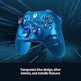 Reveal the mysteries within the Sky Cipher Special Edition controller, featuring a transparent blue design, silver interior, metallic features, and more. Look through the transparent blue top case and side caps to see metallic, silver interior parts shine through from inside. Hold on to the action with rubberized, Sky Blue grips on the back-case. Stay on target with Sky Blue metallic triggers and a matching D-pad surrounded by a dark blue accent. Seamlessly capture and share content with the Share button. Includes Xbox Wireless and Bluetooth technology for wireless gaming on console, PC, mobile phones, and tablets.* Make the controller your own by customizing button mapping with the Xbox Accessories app* and get up to 40 hours of battery life.*