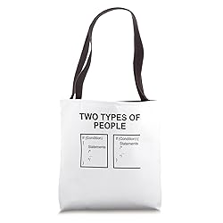 Types Of People Coding Design for Programmers who love coding on pc or computer. Every Software Developer will love this cool coder design for Computer Scientists. Looking for a great computer scientist design for christmas or birthday? Than you just found the right coding design for programmers and developers. Cool Nerd or Geek Design for Programming. 16” x 16” bag with two 14” long and 1” wide black cotton webbing strap handles. Made of a lightweight, spun polyester canvas-like fabric. All seams and stress points are double-stitched for durability, and the reinforced bottom flattens to fit more items and hold larger objects. Spot clean/dry clean only.