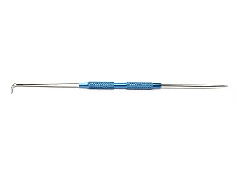 • Scribe tool for gunsmithing applications. Machinist scriber with fixed straight and 90 degree bend tips. Precision machined, chrome plated steel with aluminum handle. 8" total length.