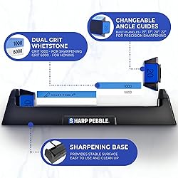Sharp Pebble Complete Whetstone Knife Sharpening System – 1000/6000 Grit Wet Stone Sharpener Kit with Built-In Angle Guides (15°/17°/20°/22°) – Beginner-Friendly