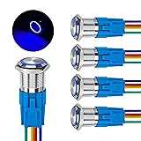 16mm 12-24V Latching Push Button Switch,Metal Copper Shell IP65 Waterproof,Ring Lamp Pattern Self-Locking 1NO 1NC (5PCS,Copper Ring Lamp)