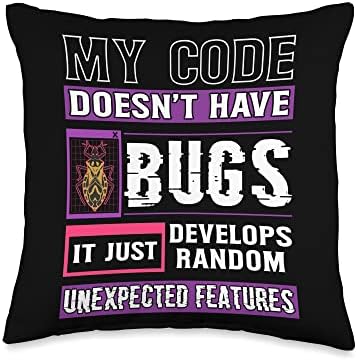 Programmer Humor Programming Developer Bugs Funny Coding Throw Pillow, 16x16, Multicolor