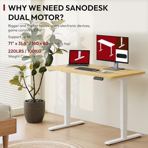 SANODESK 48" Electric Standing Desk, Dual Motor Height Adjustable Desk, Stable and Durable 3-Stage Stand up Desk for Home Office (White Frame/48 x 30 Inch Maple top)