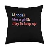 I Code Like A Girl Try To Keep Up Coder Programmer Software Throw Pillow