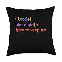 100% Polyester I Code Like A Girl Try To Keep Up Design for Programmers who love coding on pc or computer. Every Software Developer will love this cool coder design for Computer Scientists. Looking for a great computer scientist design for christmas or birthday? Than you just found the right coding design for programmers and developers. Cool Nerd or Geek Design for Programming. 100% spun-polyester fabric Double-sided print Filled with 100% polyester and sewn closed Individually cut and sewn by hand Spot clean/dry clean only