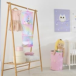 Polyester Stuffed Animals Storage: Creative collapsible design and customized unique colors, hanging use and maximizes utilization of standing space, different direction for putting items, convenient to use, easy fold when not use, saving space Material: Hanging stuffed animals net or hammock, made of net materials, strong and tear resistant, not easily deformed, all the compartments are mesh grids, making it easy for you to see what is inside and make sure what you need is in the right place where you need it Size and Package: Stuffed animals organizer holder 3 tiers size is 11.4 " x 11.4 " x 32.6 ", 4 tiers size is 11.4 " x 11.4 " x 43.3 ", 5 tiers size is 11.4 " x 11.4 " x 55 ", top with wide loop, easy to open and close, for hanging; No special installation is required, and hanging it on a hook or a closet at will, the package contains 2 pcs of stuffed animals storage Applicable Occasions: Multifunctional storage organizer toy hammock, very suitable for home storage, plush animals storage, kids room toys storage; You can hang it in the closet, the hallway, bathrooms, bedrooms and laundry, for daily home use, as well as for travel use Fun for Kids: Our toy net for stuffed animals is suitable for kids to put away their small toys, each compartment has a large opening and each opening is not in the same place, would be a great way to develop their organizational skills, and make the room tidy; Also unique colors of the hanging stuffed animals storage can be a great decoration of the kids home