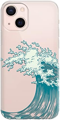 Phone Case Compatible with iPhone 16 Pro Max 16e 15 Plus 14 13 12 Mini SE 11 8 7 Clear The Great Wave Ocean Design Nautical Slim Sea Bumper Transparent Blue Protective Lightweight TPU Flexible