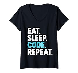Womens Eat Sleep Code Repeat Coding Lover Programmer V-Neck T-Shirt