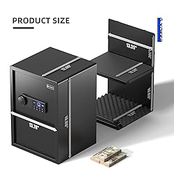 Removable Pistol Bracket:Adapted gun rack easily stores 4 handguns. Gives you more reasonable space for your biometric safe. You can also choose to disassemble gun rack when you are not using it Quick-Access Biometric Gun Safe for Pistols:Instant Advanced Biometrics: Get inside your Smart Safe in 0.5 seconds with instant biometrics analyzing your fingerprint—protecting you and your family with secure access Unique Key; Secure Recognition:All recorded data will only be stored locally and will not be uploaded to the cloud to protect your privacy and security Wall; Floor Fixing:It has pre-drilled mounting holes and expansion screws, so you can freely choose to mount it on the wall or the floor Interior Light & Silent Mode & Power Display & Emergency Port:LED lights provide a clear view so you can find what you need immediately. The silent function is very important to you when you don't want to disturb others.Power display & Emergency port, don't have to worry about running out of power at all Tough and Rugged Steel Construction:XDeer Safe box is made of reinforced solid steel wall construction, heavier than 40 lbs, equipped with pry-resistant 1/8" thicken solid door Anti-theft & Anti-pry & Anti-corrosion:XDeer biometric safe will provide long lasting strength and use for years to come. Featured on safes includes pry resistant door, durable 8-Gauge layer steel housing and seamlessly welded pry proof steel body. Hidden settings button prevents password tampering through pre-drilled holes. It also features a durable powder coated finishing to prevent corrosion and ensure long lasting protection for the security box RISKLESS ORDER - 1 Years Warranty:Our mission is for you to be fully satisfied with XDeer gun safe. We are committed to providing customers with 1-years warranty service for all of our safe box series, if you have any question, please feel free to contact us, and we will give you a satisfactory reply as soon as possible. Click Add to Cart and try it now. Exterior Dimensions: 13.64" x 13.0" x 19.7", Interior Dimensions 13.58" x 11.81" x 19.09"