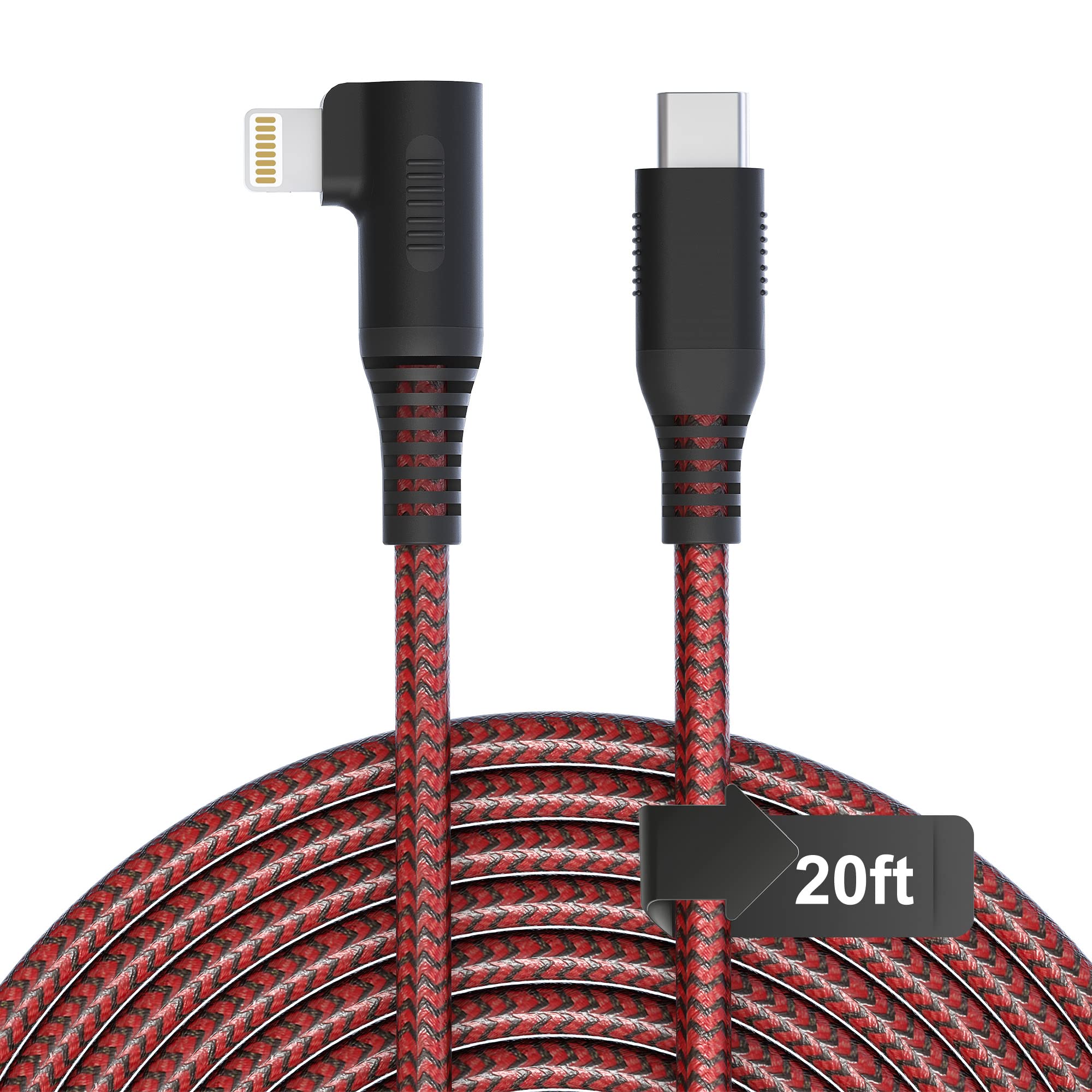 - 20ft USB-C to Lightning CableLong iphone charger cord 20ft makes it easy to charge your iPhone from anywhere in the room.SpecificationsName: Extra Long Type c to Lightning CableMaterial: Nylon BraidedSize: 8.6*12.2*0.1 inchCable length: 20ft(6m)High-speed transmission: 480MbpsWhat You Get: Type c to lightning cable*1*Warm Prompt*①When you use the PD function, you need to use 20W or above USB-C power adapter to achieve power delivery fast charge, our product only have apple charger cord,not have USB-C power adapter.②Please feel free to contact us if you have any questions. We provide 24 hours after-sale service for our customers.
