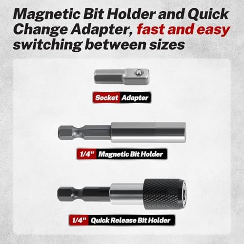 TOMMARS 208-Pc Master Screwdriver Bit Set, 1/4" Hex Shank Screwdriver Bits, Nut Driver and Security Bit Set