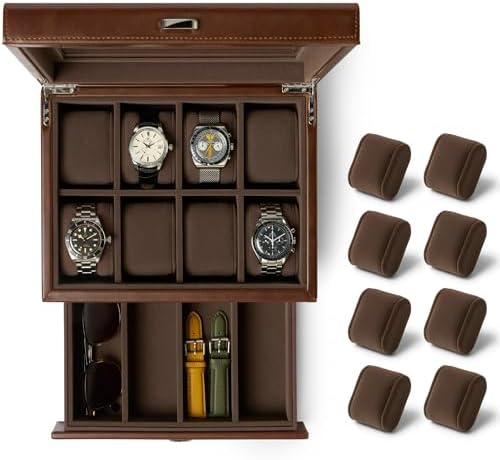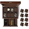 TAWBURY Bayswater 8 Slot Watch Box with Drawer (Brown) with a Set of 8 Small Pillows to Fit 6.6-7.1" Wrists