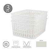 Simplify 3 Pack Small Herringbone Storage Basket | Dimensions: 10"x8"x4" | Light Weight | Two Open Handles | White | Organization | Many Uses | Kitchen Storage | Bathroom Storage |
