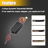 FLASH SIGNAL -- With the successional flash module box installed, your car's turn signal lights will output three signals continuously, each flashing about 0.28 seconds, and the full rotation signal is 0.85 seconds. SUITABLE FOR -- These universal 3-step sequential chase flash module boxes are universal fits for most cars' front or rear turn signal lights with DC 12V but needed some retrofitting work. Professional installing needed FUNCTION -- The two module boxes convert the standard blinking action of your front turn signal or rear turn signal into continuous lighting. It can improve traffic safety warnings, to avoid rear-end accidents. When driving clogged at night, continued brakes produce visually tired, this module can solve this shortcoming STABLE PERFORMANCE -- The LED flash module has reliable quality, and stable performance, Package Includes: 2 x 3-Step Dynamic Sequential Module boxes. For both driver side and passenger side INSTALLATION -- Needed some retrofitting work and professional installation. If do not need the output adapter, you could cut it off
