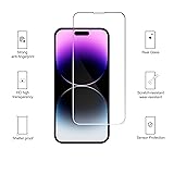 Works For iPhone 14 Pro 2022 tempered glass screen protector and camera lens protector.Featuring maximum protection from scratches, scrapes, and bumps.[Not for iPhone 14 6.1 inch, iPhone 14 Plus/iPhone 14 Pro Max 6.7 inch] Night shooting function: specially designed iPhone 14 Pro 6.1 Inch display 2022.The camera lens protector adopts the new technology of "seamless" integration of augmented reality, with light transmittance and night shooting function, without the need to design the flash hole position, when the flash is turned on at night, the original quality of photos and videos can be restored. It is 100% brand new, precise laser cut tempered glass, exquisitely polished. 0.33mm ultra-thin tempered glass screen protector provides sensor protection, maintains the original response sensitivity and touch, bringing you a good touch experience. Easiest Installation - Please watch our installation video tutorial before installation.Removing dust and aligning it properly before actual installation,enjoy your screen as if it wasn't there. 99.99% High-definition clear hydrophobic and oleophobic screen coating protects against sweat and oil residue from fingerprints,enhance the visibility of the screen.