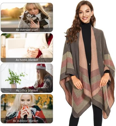 Shawl Wraps for Women, Elegant Knitted Cape Open Front Poncho Scarf Blanket Cardigan Coat for Spring, Autumn, and Winter