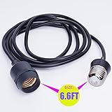 E26/E27 Light Socket Extender cord: Covert E26/E27 light bulb to socket adapter,With 6.6 FT extension cords be used to feed temporary emergency lighting, Convenient for adding for a temporary outlet light socket in Yard, Garage, porch, workshop etc. Easy & Convenient: You just have to turn the outlet adapter clockwise as if you are screwing a bulb into place(Remember disconnecting the light socket from power!!). Stable Material: our light socket to plug adapter is made of flame retardant PVC material, flame retardant 105 degrees Celsius,, long time last Wide Application: The light bulb adapter socket will help for work in places which without plugs or extender, whether indoor or outdoors, such as: patio, pool, old farm house, garden, backyard… Light Socket Adapter with Extension Cord: the bulb socket adapter is powered by 125V AC, 7.6A, 950W, with 6.6 FT extension cord, which is nice for E26/E27 Light Socket , you to plug in any direction