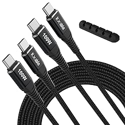 【100W Fast Charging】: Supports charging speed up to 100W (20V 5A), saving you a lot of time. USB 2.0 data transmission speed is up to 480mbps. Designed to work flawlessly with any USB-C device (including phones, tablets and laptops). Note: the actual charging speed depends on your device and wall charger, and does not support video output. 【High quality & Durable】: Kxable USB C cable adopts hard-wearing nylon braided jacket, premium aluminum shells with shinning edge, reinforced SR (with a 10,000-bend lifespan) to create a cable that’s durable both inside and out. 【Extremely Cost-effective】: Our USB cable is designed with two preferential packages while ensuring high quality. With a cable clip (5 Slots), which is a effective desk cable management to keep all your messy cables organized and accessible in the positions you require. 【Universal Compatibility】: Kxable usb c cables (from 2ft to 6ft) are compatible with all USB-C devices: iPhone 15 / 15 Plus / 15 Pro Max, MacBook Pro 22/21/20/19, MacBook Air, iPad Air/Mini Samsung S22/S22+/S22 Ultra/S21/S21 Ultra/S21+/S20/S20+/S10, Note10/ Note10 Plus, Google Pixel 2/3/3a/4 XL, Switch/Switch Lite, Dell XPS 15/13 and more. 【Worry-Free Service】: Create a wonderful experience. We offer a one-year warranty for these cables. If you have any questions, please contact us and our professional customer service will reply to you within 24 hours.