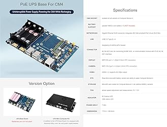 Waveshare PoE UPS Uninterruptible Power Supply Base Board/Mini-Computer Designed for Raspberry Pi Compute Module 4 Gigabit Ethernet Dual HDMI Quad USB2.0