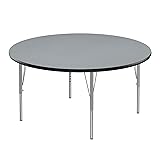 SIZE: Table Size is 48" Round Legs easily adjust from 19" to 29" in height in 1" increments, perfect for many different ages, with Speed-Wrench for fast, easy adjustments TOP: Melamine laminate surface, offers a smooth writing surface that is harder than real wood DURABLE: Designed for the heaviest use in demanding environments such and schools and churches, crayon and even permanent marker can be removed without damage Made in USA, Custom Built-to-Order since 1969 with superior features such as the strongest leg mounting in the industry, and free speed wrench for fast and easy height adjustments
