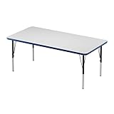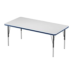 Correll 30"x60" Rectangular Classroom Activity Table, Height Adjustable (19"-29") Markerboard/Dry Erase Durable High Pressure Top, Blue Edge, Black/Chrome Legs, School Furniture, Made in The USA