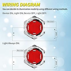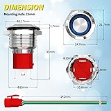 Product: Momentary Push Button Switch is 4 pin SPST momemtary type. Push & hold to switch ON, Release: OFF. Marine momentary push switch is made of superior stainless steel, which is sturdy and durable enough for long term use Heavy Duty: Push Button Switch 12v is a heavy duty one with the rating of 20A 12V DC for safer application in Marine Boat, RV, Truck, UTV or other devices need circuit control Wire Harness: The 20 amp momentary push button switch will come with wiring harness which make the wiring easy to mount but not easy to fall out, the mounting hole diameter of this momentary button is 3/4"(19mm) Blue LED: Push Button Light Switch is designed with ring blue led and the illumination mode of the momentary push button can be changed by different wiring methods Waterproof: Waterproof 12v Switch is IP67 grade waterproof and dustproof. Reliable to provide you devices or vehicles with all-around protection. Good for both indoor and outdoor use