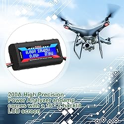 Simple to Read: each watt meter power analyzer is designed with a bright blue backlit LCD display for your reading convenience, allowing you to see the above data clearly in the dark, or even in the sun and other places Detect and Calculate Effectively: power monitor can detect the voltage maximum, which can not only effectively calculate the voltage, current, power, discharge and discharge time of the aircraft, calculate its force effect, can also be applied for the measurement of small current solar energy, electric vehicles and so on, important for the energy efficiency detection High Accuracy: the battery monitor operates in the range of 4.8V to 60V using optional auxiliary batteries; Measurement 0-200A, error 0.01A; Measuring 0-60V with 0.01V resolution; Measurement 0-6554W, resolution 0.01W; Measure 0-65Ah, 0.001Ah resolution; Note: it is suitable for systems below 60V and current below 200A, do not exceed the limit Versatile to Apply: our power analyzer with high precision is multi purpose to use, can meet your various work needs; For example, it does well to evaluate RC battery charging efficiency, battery powered device's power and energy consumption, and it can measure the operating voltage, so that the battery, motor, wiring, connector can work properly Low Resistance: our battery analyzer adopts quality tin copper core as material, fine in workmanship, low in resistance and stable in function, which can accompany you for a long time; In addition, it is equipped with an exhaust port, expels internal heat, helpful to prolong its service life