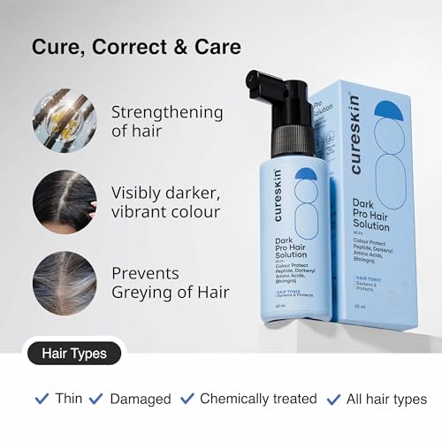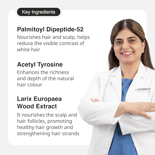Cureskin Anti Grey Hair Serum | Gradually Reduces Gray Hair on Head & Beard Without Dye | Restores Natural Hair Colour with Peptide-52, Acetyl Tyrosine & Larix Extract | Peroxide & Ammonia Free