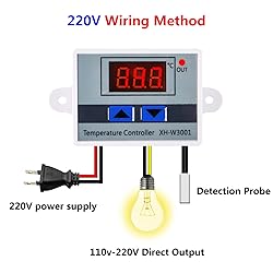 W3001 digital LED temperature controller thermostat thermoregulator control devices are equipped with stainless steel probes, hardly rusting, having nice working performance,the ABS material make sure it is not easy to break. W3001 temperature controller comes with LED display, display the temperature clearly, making it convenient for you to read and adjust the temperature in time. There are 2 working modes of the digital LED temperature controller module, heating mode (start temperature is lower than stop temperature) and cooling mode (start temperature is higher than stop temperature), range from -50°C to 110°C; The high temperature control accuracy reaches 0.1℃ W3001 microcomputer digital temperature controller module can be widely applied in the conditioning systems, incubators, equipment cases, temperature control protection and others Note : When setting the heating mode, if you accidentally set the set temperature value upside down, the output indicator will not light up and the load will not work. If the above situation occurs after setting, you can check whether the set temperature value is upside down