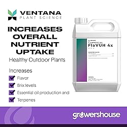 STRONGER, HEALTHIER PLANTS - Ventana Plant Science FlaVUH 4-0-4 4X CONCENTRATE is an amino acid monomer and amino acid polymer additive essential for flowering plants and vegetables. Derived from organic oyster shells. Available in 4 oz, 1 qt, 1 gal, 2.5 gal, 55 gal. INCREASE NUTRIENT UPTAKE - Increase flavor, Brix levels, essential oil production and Terpenes in flowers, garden veggies and medicinal house plants. This indoor and outdoor plant food increases the overall nutrient availability and uptake rate. MEASURABLE RESULTS - This liquid all purpose plant food showed an increase in dry weight biomass of 14% vs control in side-by-side comparisons at commercial facilities. Our nutrient line is designed to be complete in its composition, but not wasteful. And with 4x concentration, you can ensure your plants enjoy quality nutrients without watered-down results. WORKS WELL WITH OTHER FOODS - This versatile liquid food can be used on its own or easily added to a variety of regimens. An essential part of Ventana's Veg Program and Bloom Program. BY FARMERS FOR FARMERS - Ventana Plant Science founders use their knowledge from decades of agriculture experience to develop the best plant foods for commercial, hobby, and medicinal plant growers. All products are carefully formulated and researched with the latest evidence-based horticultural science.