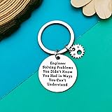 Gift for Engineer - “ENGINEER Solving Problems You Didn’t Know You Had In Ways You Can’t Understand”keychain.Funny gift for Engineer, Engineering, Science, Computer, Electrical, Civil, Mechanical, Science, Math, Student, Graduation, New Graduate, Brother, Son,Nephew,Coworker,Cousins. Engineer Appreciation Jewelry - Perfect as Engineer birthday gift, Thanks gift for Engineer, Christmas gifts for Engineer, Retirement Gift for Engineer.Architect engineer gift, Construction engineer gift, back to school gift,Graduation Gift for Engineering Student, Future Engineer Gift, Construction Worker gift, Environmental Engineer gift for college Engineer management student gift. Future Engineer Gift - This keychain as a gift for your friend who is a engineer or construction worker to convey your appreciation to them.This inspiring words can make engineers confident and believe that through their hard work. They can create the world that have never been and bring beauty to the world and create happiness for more people. Engineer Keychain - Made of High quality Stainless Steel, it is lead free and nickel free, hypo allergenic, it doesn’t rust, change colour or tarnish,very durable suitable for treasure.Size:the pendant diameter:30mm(1.18”). Free Nice Velvet Pouch - This Engineer inspirational Keychain will come beautifully packaged in an elegant velvet pouches, and ready for gift giving. The lucky receiver will love this special gift.Perfect gift for Engineer, Engineering student, Scientist, Construction engineer or Mechanical/ Architect engineer.
